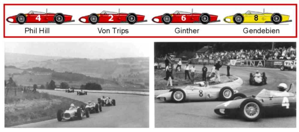 The final result was: 1st Phil Hill, 2nd Von Trips, 3rd Ginther, 4th Gendebien, 5th Surtees.