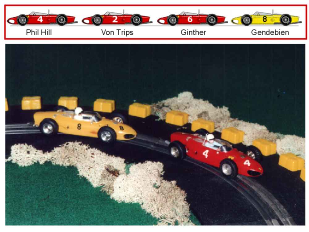This is my personal slot tribute to that great unbeatable record! Slotcars are Scalextric Ferrari 156 sharknose.